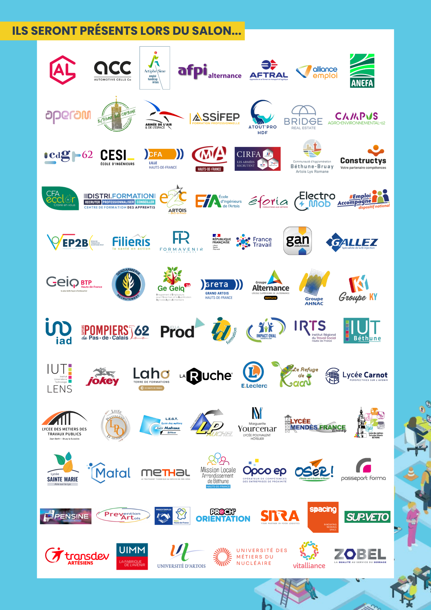 La Communauté d’Agglomération de Béthune-Bruay, en partenariat avec France Travail, la Mission Locale de l’Arrondissement de Béthune et la Plateforme Proch’Emploi de Béthune-Bruay, te donne rendez-vous pour « Le salon de l'orientation et de l'alternance ».